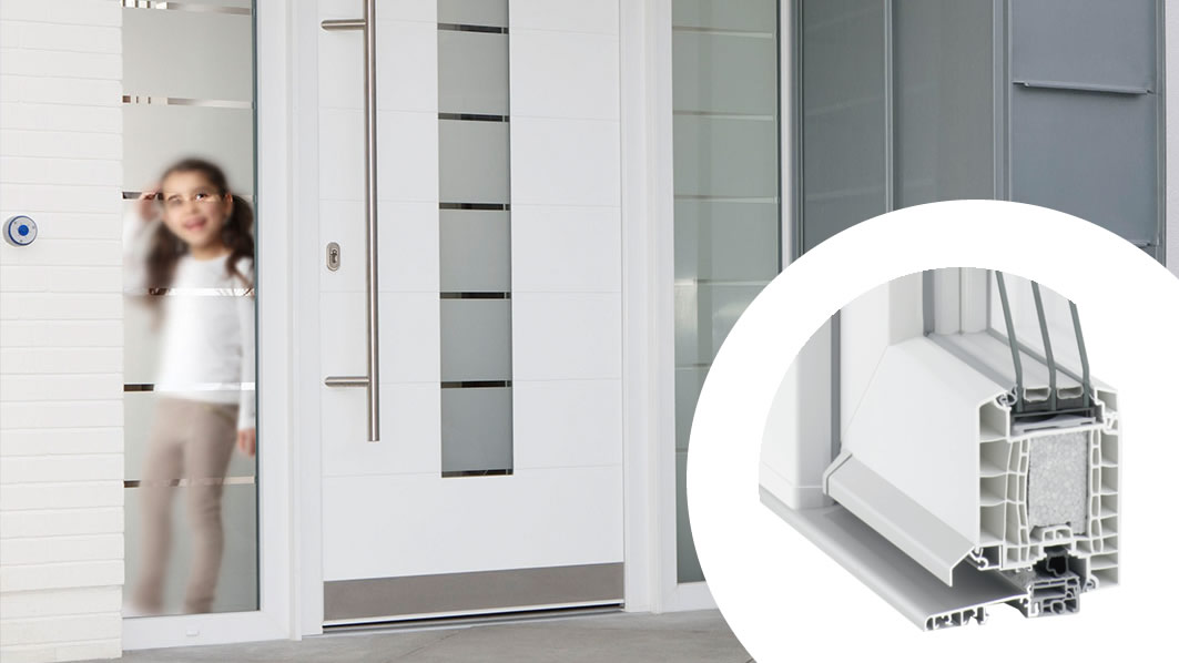 Naši GENEO profili ulaznih vrata svoju visoku stabilnost, i bez čeličnog ojačanja, postižu zahvaljujući Hightech-materijalu RAU-FIPRO. Zbog čega su još bolji po pitanju termoizolacije jer se ne koristi ojačanje koje može da dovede do nastanka toplotnih mostova.U kombinaciji sa termomodulima i ispunom za ulazna vrata do 53 mm debljine naša GENEO ulazna vrata postižu Ud-vrednosti i do 0,51 W/m²K.
